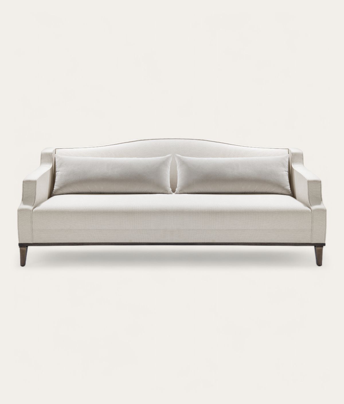 Il rivestimento in tessuto crema dona luminosità all’ambiente e si abbina perfettamente a interni moderni, minimal o dallo stile “modern luxury”. Un divano che unisce funzionalità, eleganza e un forte carattere contemporaneo.