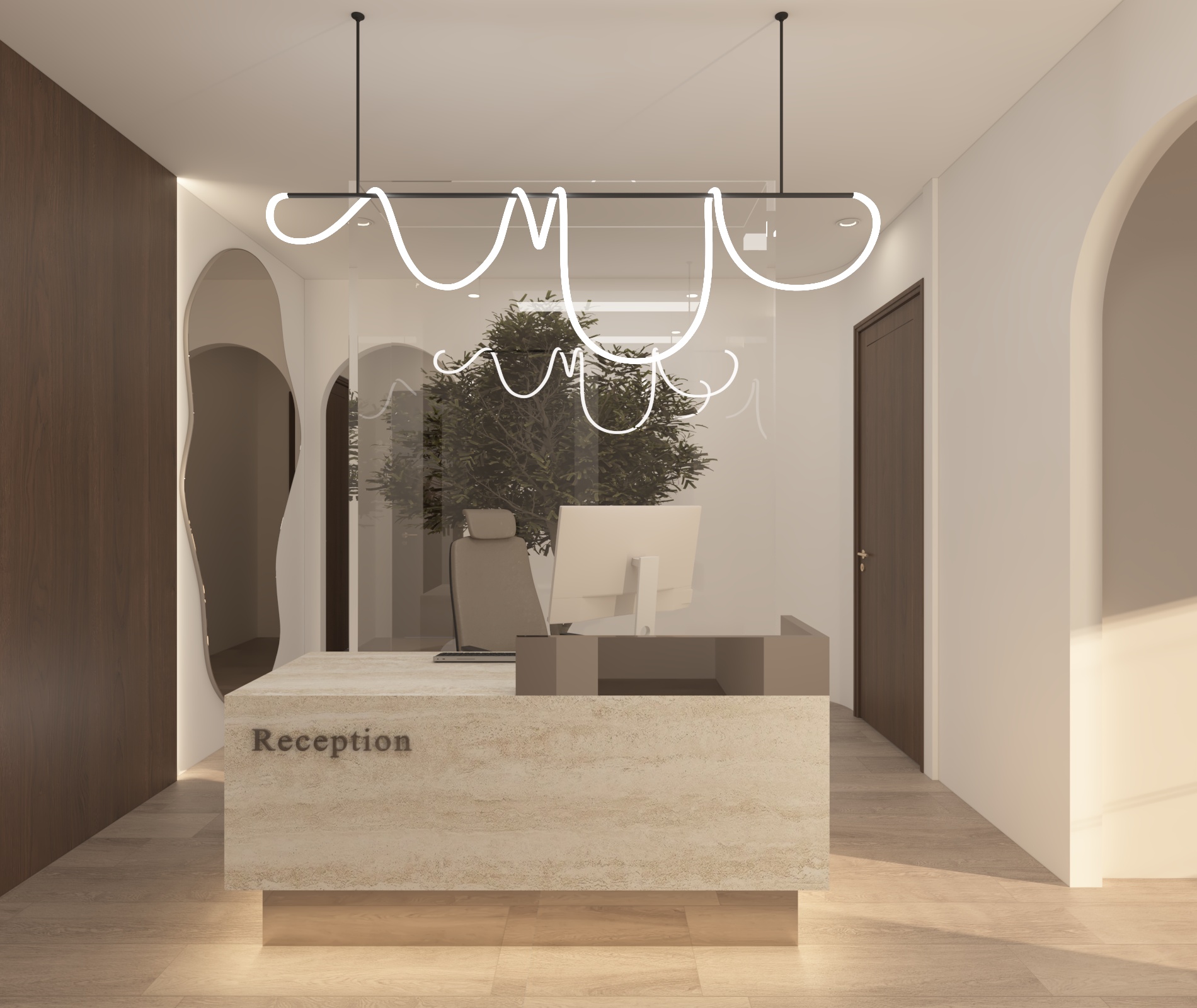 Il progetto del cabinet medico del Dott. Youssef Gam in Tunisia si sviluppa secondo un linguaggio minimalista di ispirazione italiana, dove eleganza, funzionalità e comfort si fondono in un ambiente raffinato e accogliente. Le forme morbide e organiche, la palette cromatica neutra nei toni del crema, del beige e del legno naturale, insieme a un’illuminazione studiata e scenografica, contribuiscono a creare un’atmosfera rassicurante e contemporanea, pensata per migliorare l’esperienza del paziente fin dal primo ingresso e riflettere un’immagine professionale moderna e di alto livello.