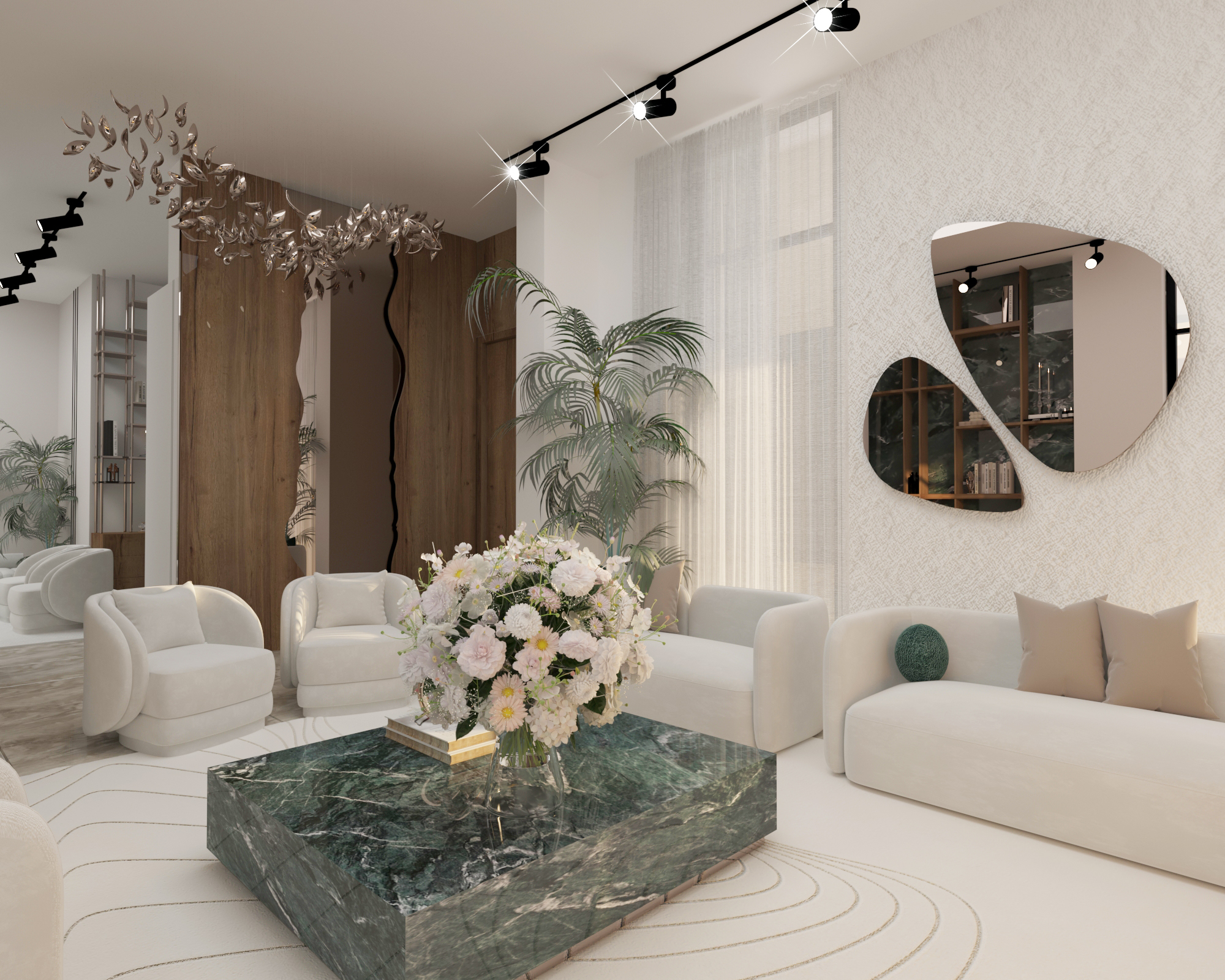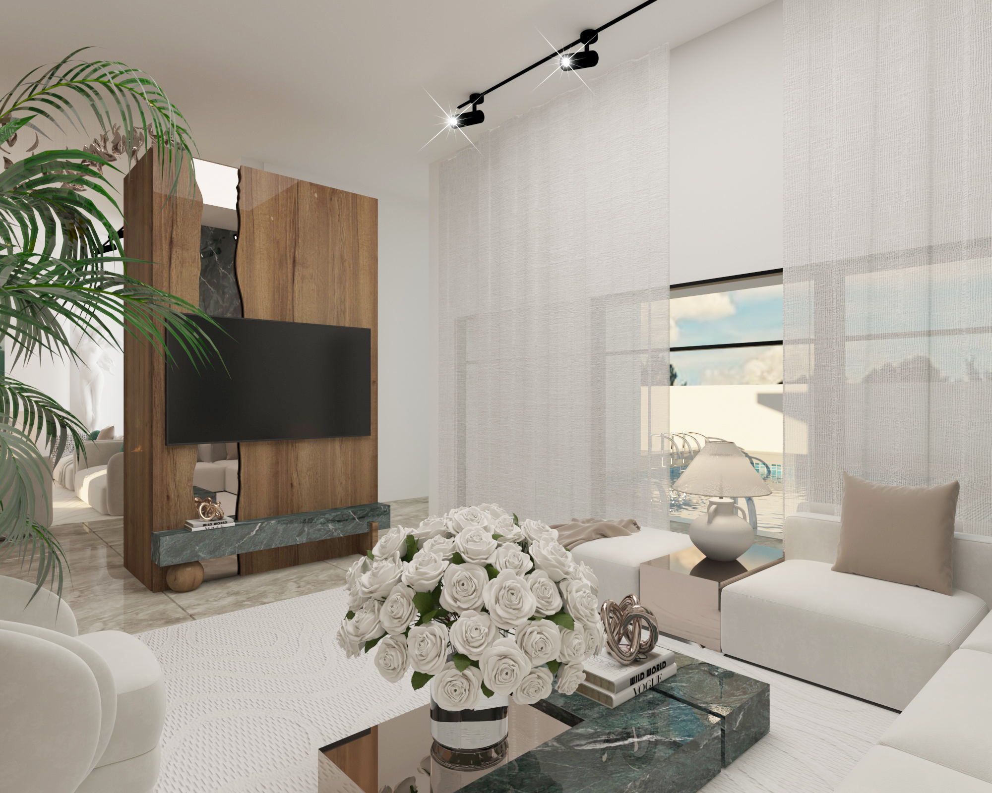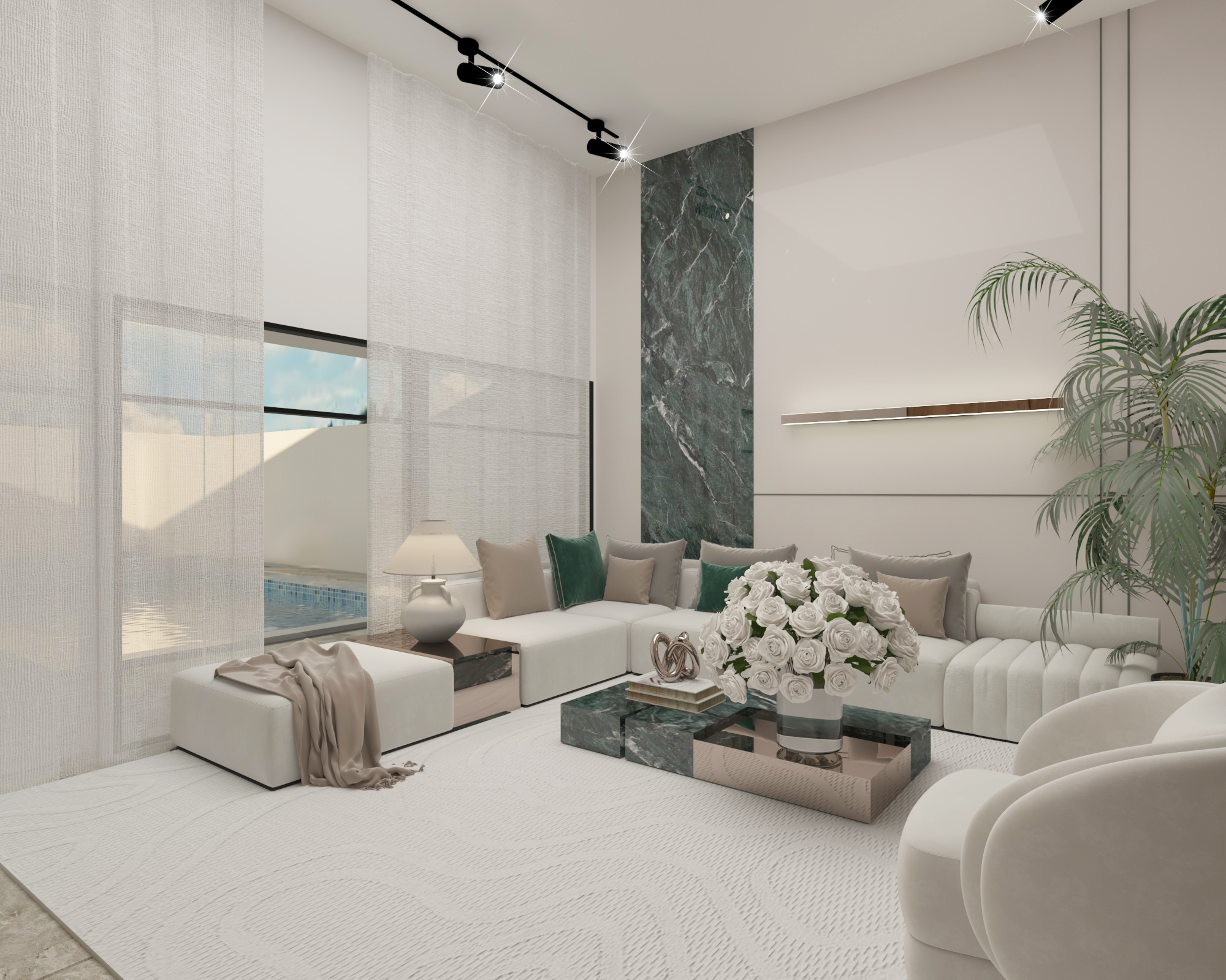 Progetto di casa contemporanea caratterizzato da un linguaggio architettonico elegante e senza tempo, dove il minimalismo incontra il calore dei materiali naturali. Gli spazi interni sono pensati per valorizzare la luce naturale, con una palette neutra, arredi aux lignes douces, inserti in marmo e legno, e un’illuminazione studiata per creare un’atmosfera raffinata e accogliente. L’organizzazione fluida degli ambienti, unita a dettagli decorativi sobri e a volumi equilibrati, offre un perfetto connubio tra comfort, estetica e funzionalità, riflettendo uno stile di vita moderno e sofisticato.